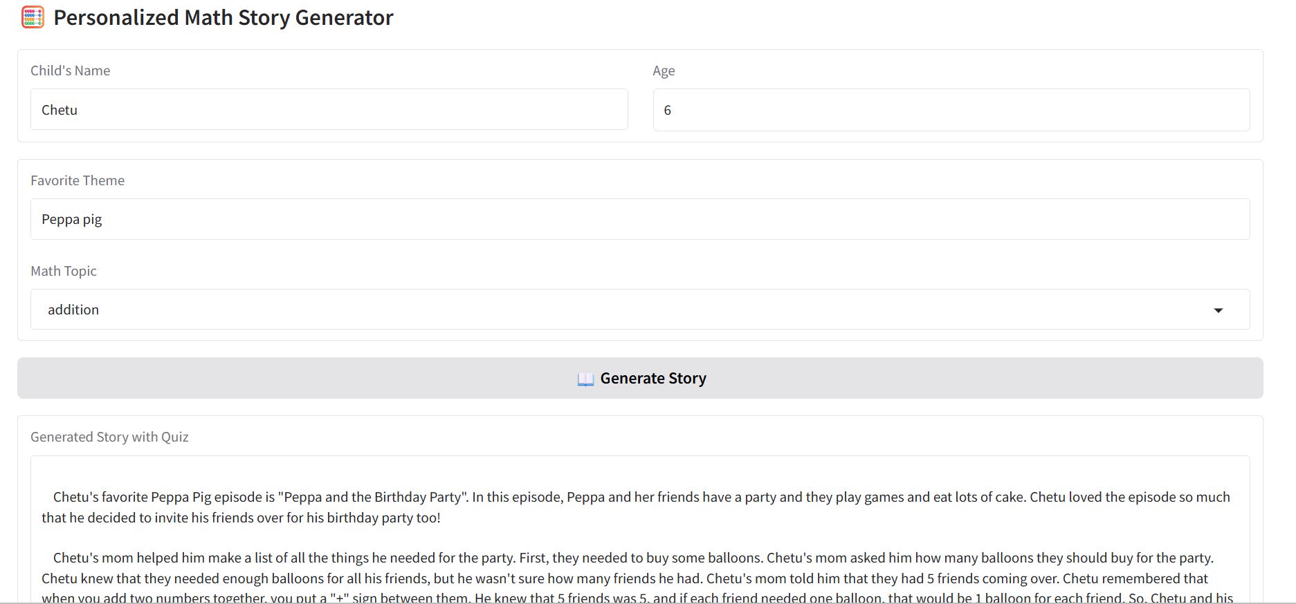 AI Powered Math Story Generator